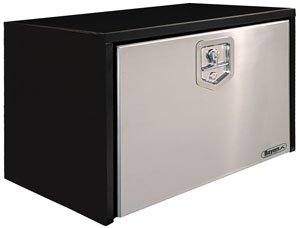 - Buyers 24 In. Underbody Truck Box-Black w/Stainless Steel Door (1703700) Powder coated steel box 14-gauge stainless steel (mil finish) 14-gauge, bright polished, stainless steel door Recessed and beveled door Rain channel design .25 in. door gasket Stainless steel locking T-handle latch (2 latches on 48" & 60" toolboxes) Stainless steel continuous hinge protects from moisture and road dirt Reinforced door backbone strengthens the integrity of the door and protects the latch mechanism No s...