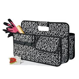 The gardener's best helper! Loaded with pockets and compartments, this roomy tool box keeps her gardening tools and accessories in easy reach. Bold print makes it fun to use! Save on this product with coupon code MAYSAVE. Good through 06/02/11 or while supplies last. He won't confuse this tool box for his! No more treks back and forth to the garage. This rugged nylon tote is loaded with pockets that give you plenty of room for your trowel, pruners, clippers, gloves, phone, weeder, knee pads, seeds, water bottle and more. Two large main compartments with rigid bottoms and 15 pockets (3 with flaps) provide lots of easy-access storage. Wrap-around grip makes carrying comfortable.
